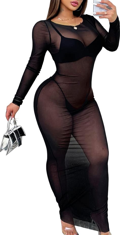 Sliot Transparent Dress Sheer Dresses For Women Sexy Sheer Mesh Dress Bodycon Dress Mesh Long Dress