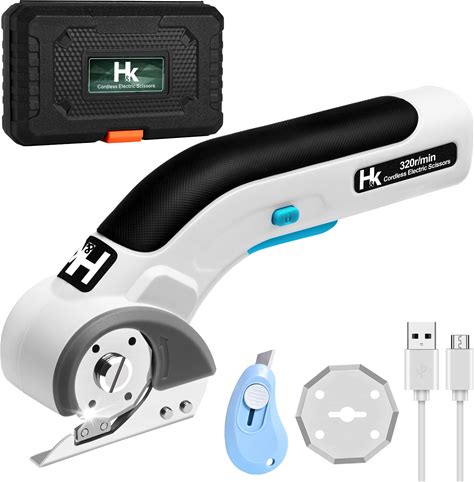 HK Cordless Electric Scissors, 4V Electric Box Cutter, Carpet & Cardboard Cutter Tool With A Replacement Blade/Charger, Rotary Cutter For Cardboard