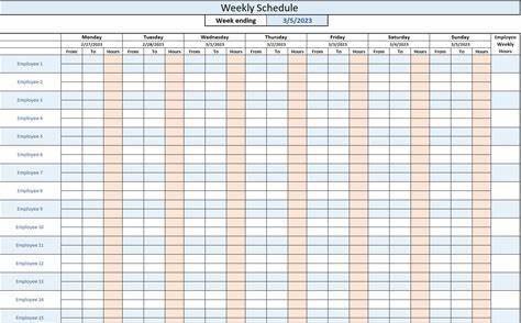 Work Schedule - Print Weekly