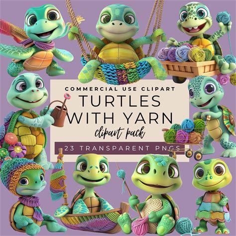 Turtle Yarn Clipart Pack: 23 PNG Graphics (Digital Download)