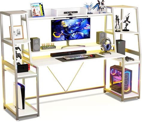 Bowthy Gaming Desk With Led Lights 47Inch Carbon Fiber Gamer Desk For PC 17" Z-Shaped Gaming Table For Home Office Game Desk With Free Mouse, Pad Holder For Controller, Headphonedrink Black