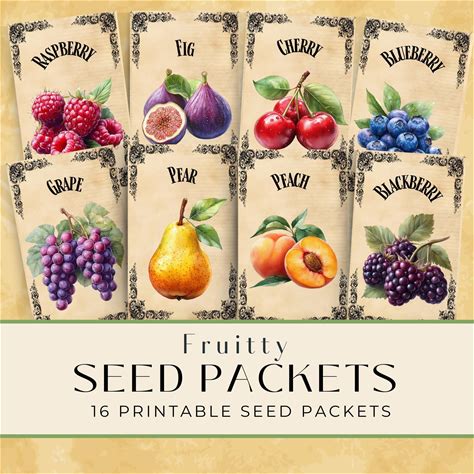 Fruit Digital Junk Journal Download Seed Packets, Junk Journal Collection, Veggie Digital Kit Cookbook Ephemera, Seed Packet Style