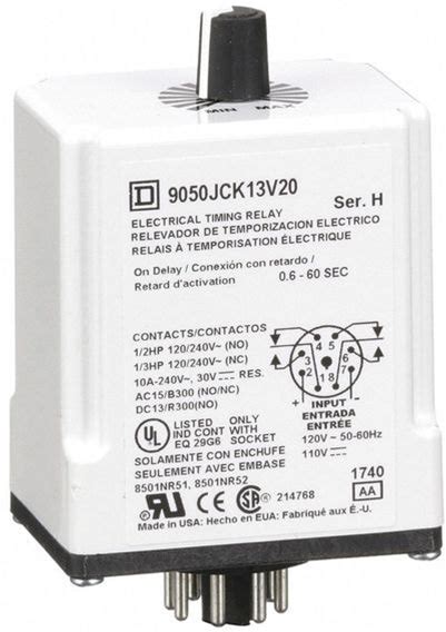 SCHNEIDER ELECTRIC Single Function Time Delay Relay, Octal, On Delay, 1 Functions 120V DC, DPDT, 9050JCK13V20