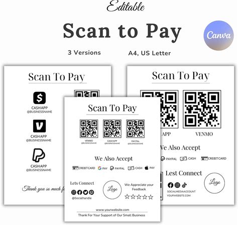 Scan To Pay Qr Code Sign Template, Craft Show Templates, Scan To Pay Small Business Qr Sign, Price List & Scan To Pay, Paypal Payment Sign