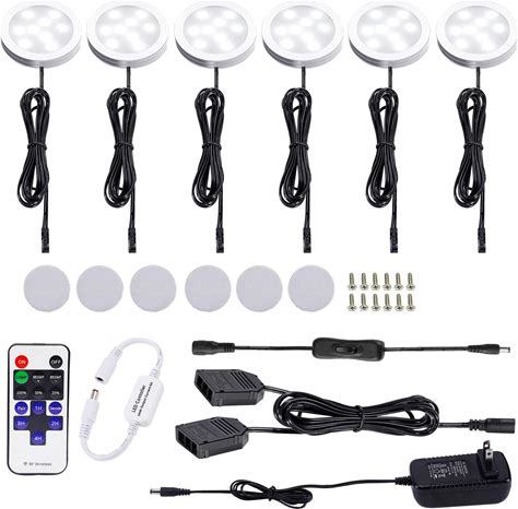 Linkable Dimmable Under Cabinet LED Puck Lights - 12V With Wireless RF Remote Control, Hardwired & Plug-In Options For Counter Lighting (6 Lights, War