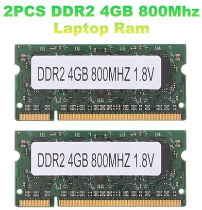 2Pcs Ddr2 4GB 800Mhz Laptop Ram PC2 6400 2Rx8 200 Pins Sodimm For Laptop Memory,2 X RAM,Green